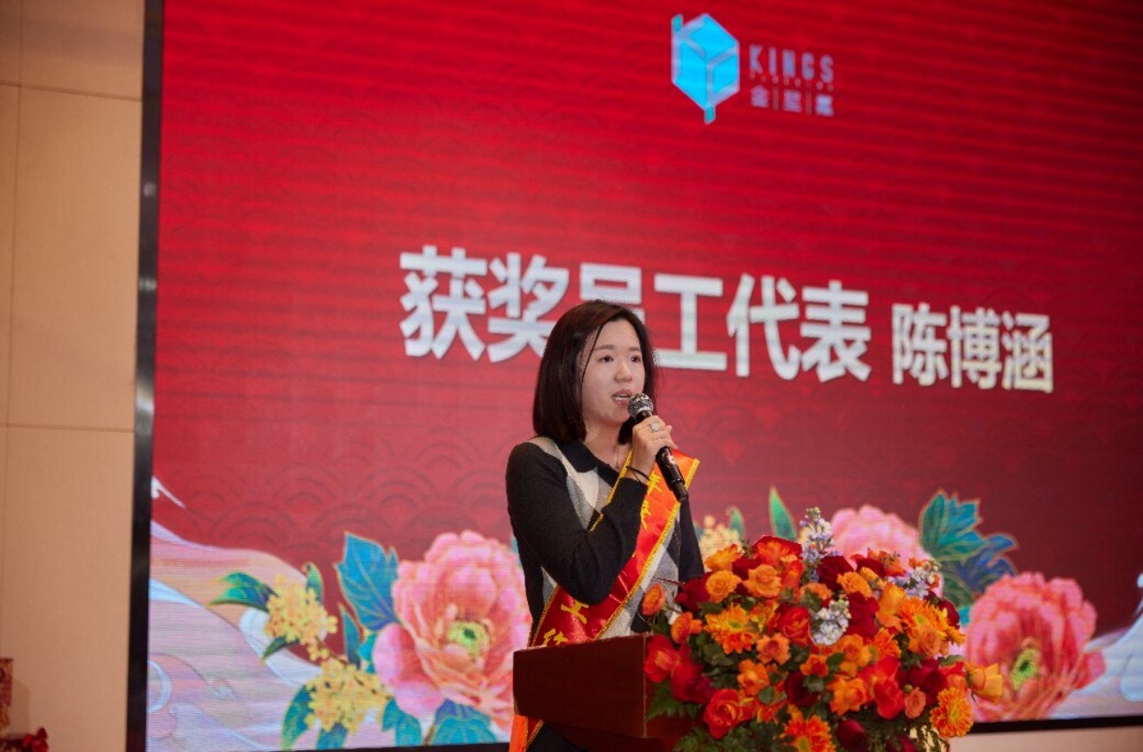 公共事務(wù)部陳博涵作為先進(jìn)個(gè)人代表發(fā)言,深感榮幸與感恩,坦言這份榮譽(yù)屬于全體金石氟業(yè)人?;仡欉^(guò)往,她感謝領(lǐng)導(dǎo)鄧琪煒的悉心指導(dǎo),也難忘與團(tuán)隊(duì)并肩作戰(zhàn),見證園區(qū)從荒蕪到項(xiàng)目落地投產(chǎn)的蛻變,深刻體會(huì)到團(tuán)隊(duì)的強(qiáng)大力量。她表示會(huì)將榮譽(yù)化為動(dòng)力,精進(jìn)業(yè)務(wù)、腳踏實(shí)地,還愿與同事攜手奮進(jìn),共譜公司發(fā)展新篇。