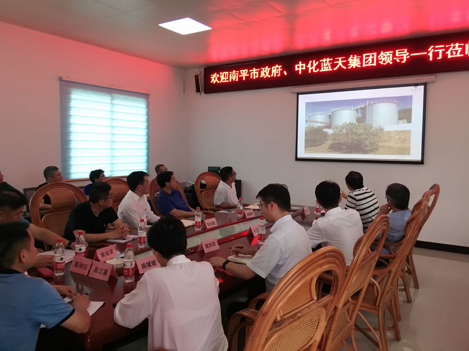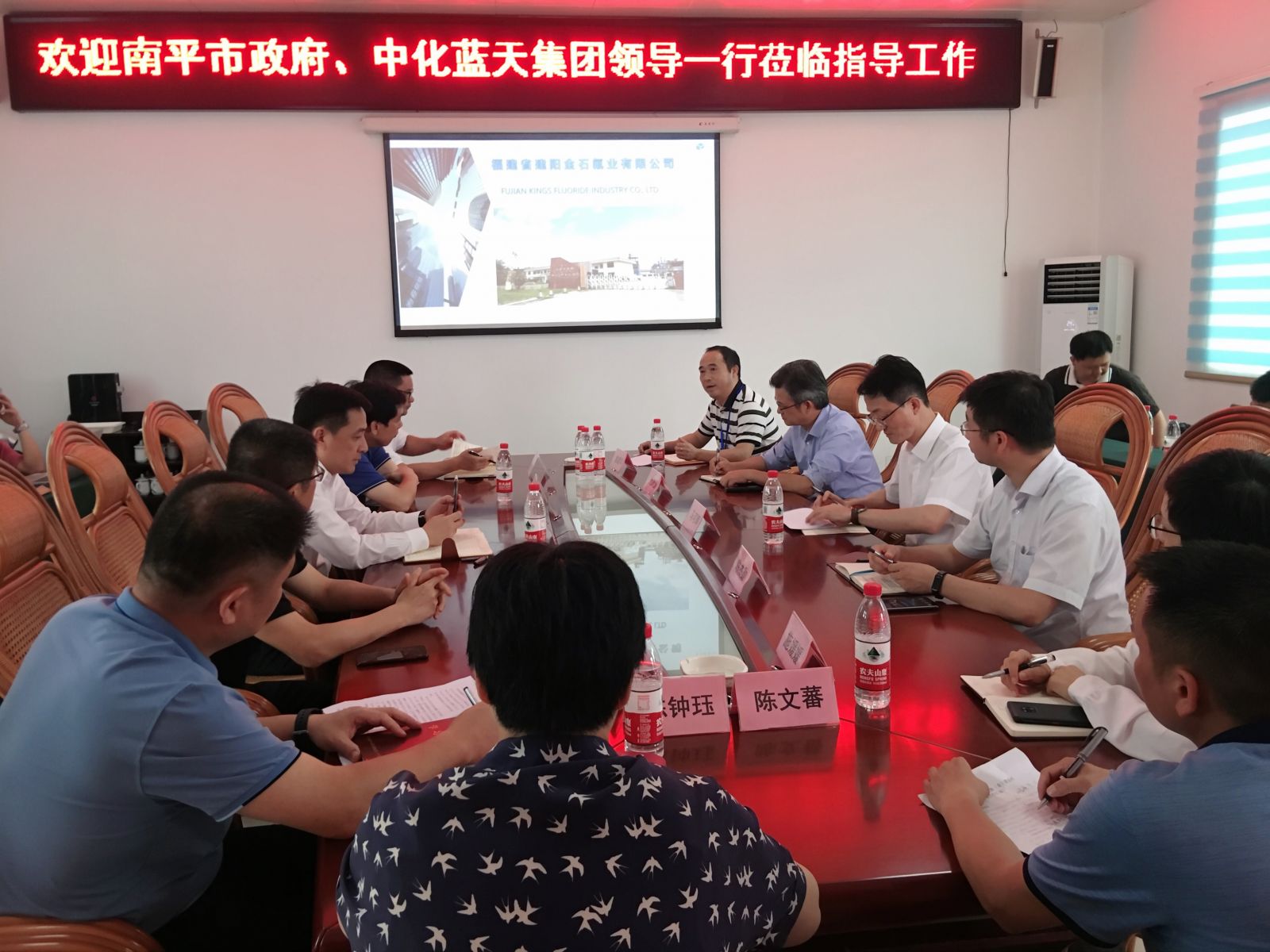 2020年6月8日下午,南平市長劉洪建一行、中化藍天董事長、黨委書記、總經理馬可輝一行蒞臨公司考察并座談。