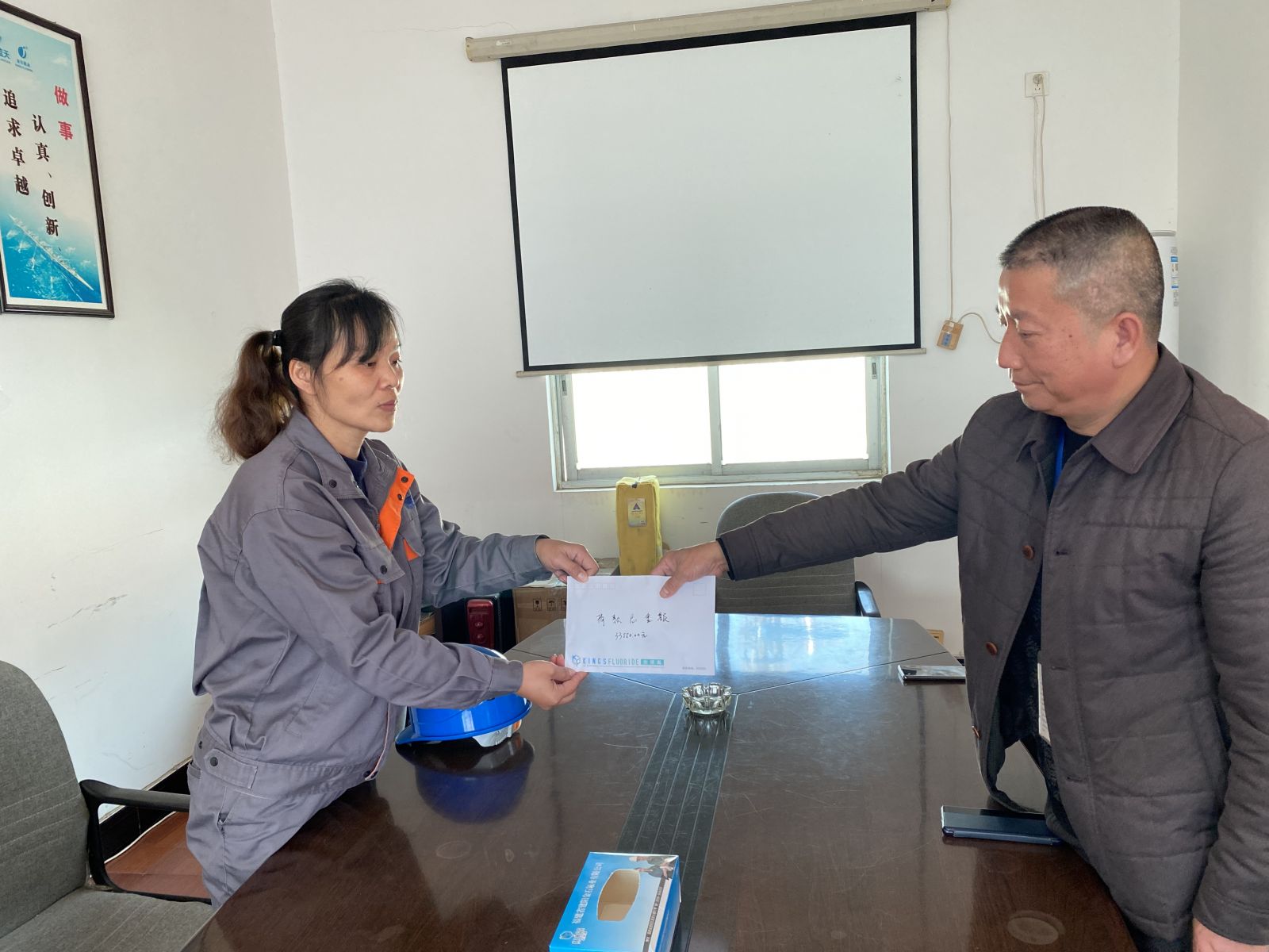 12月24日下午,公司工會主席陳忠毅、副總吳子亮等一行與毛卓青家屬座談,并將員工捐款交給毛卓青家屬徐秀弟。